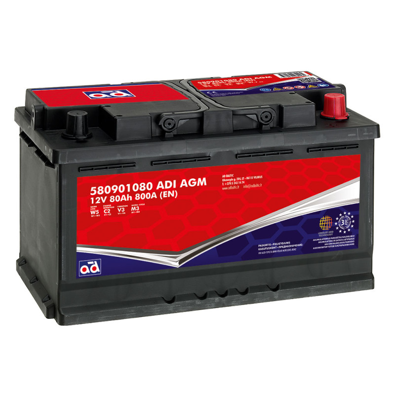 AD Start-stop plus AGM 80Ah 800A 12V akumuliatorius